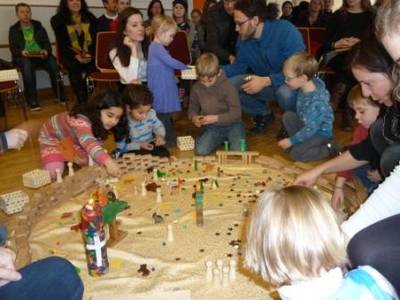 zu Spiel und Spaß, Singen und Beten, Bibel-Theater und Kleingruppen im evang. Gemeindehaus.